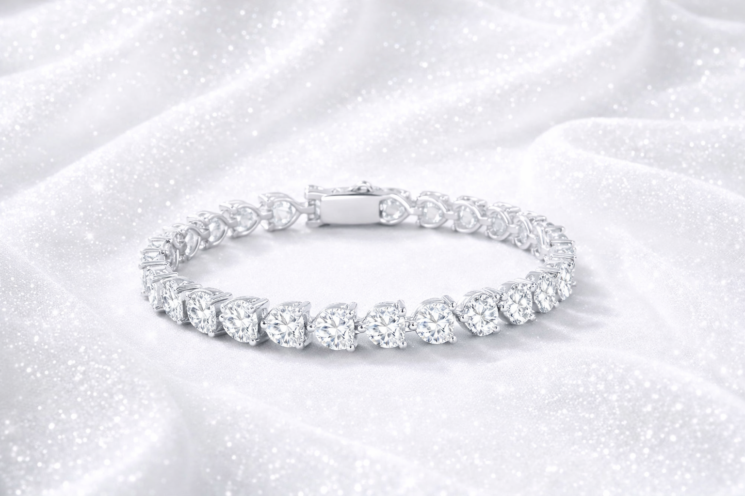 Crafted from premium S925 silver and finished with a platinum-plated coating, the bracelet offers a substantial, high-quality feel with lasting shine and durability. Its solid weight reflects fine craftsmanship and attention to detail, while the refined setting enhances the natural fire and clarity of the moissanite stones.